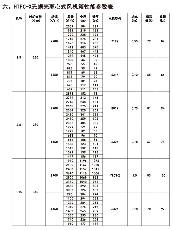 六、HTFC-X無蝸殼風機箱
