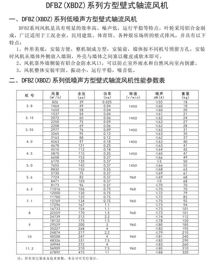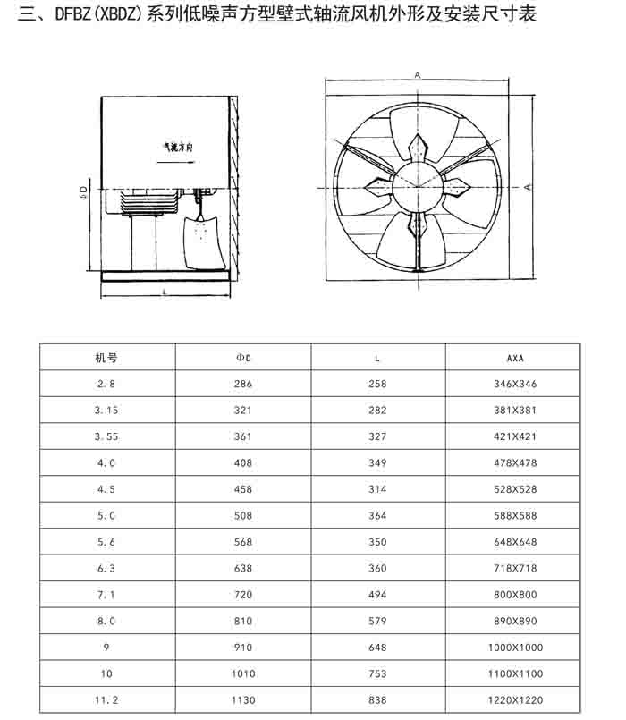 十一、DFBZ(XBDZ)系列方型壁式軸流風機