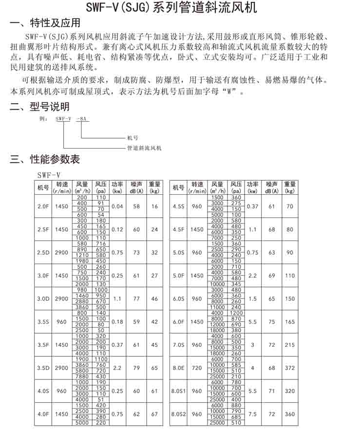 二、SWF(HLF、GXF)-I、II、H 系列高效混流風機