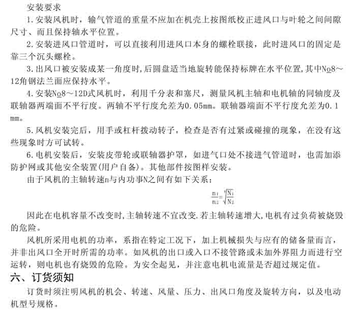 一、風(fēng)機選用參考、安裝維護使用說明、常見故障分析、訂貨注意事項
